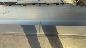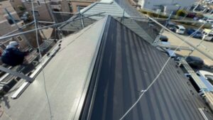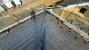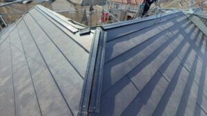 頂上部には二面の屋根の隙間を覆うように「棟板金」と呼ばれるものが設置されています。