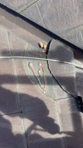 スレート屋根をご使用になられていましたが、劣化が激しく、屋根材にひびや割れなどが多数見られます。