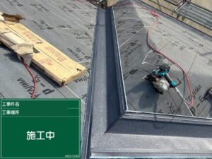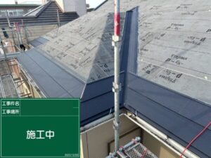 防水シートの上から新しい屋根材「スーパーガルテクト」を設置しました。