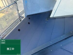 防水シートの上から新しい屋根材「スーパーガルテクト」を設置しました。