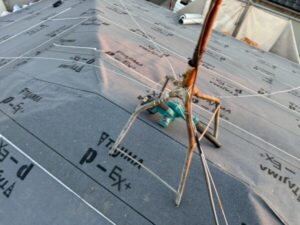 こちらの写真は棟板金の土台となる「貫板」設置時のものです。