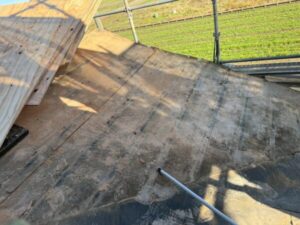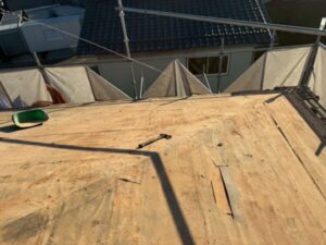 野地板は屋根の下地の板のことで、屋根の強度を保ちつつ、防水シートや屋根材を貼り付ける土台となります。