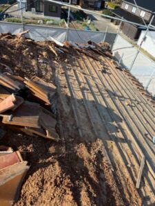 瓦を撤去すると大量の葺き土が出てきました。