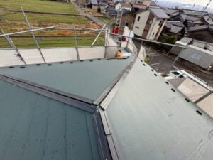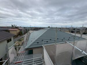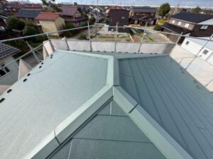 川口市にて雨漏り修理・屋根修理〈和瓦からスーパーガルテクトへの葺き替え工事〉の施工後写真