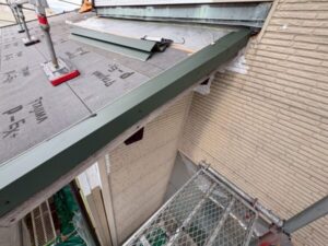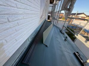 外壁と屋根の接合部分にも貫板を取り付けてから、板金を設置します。
