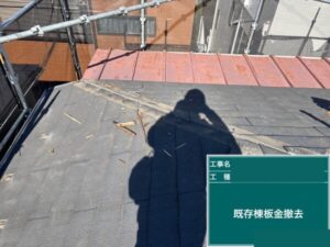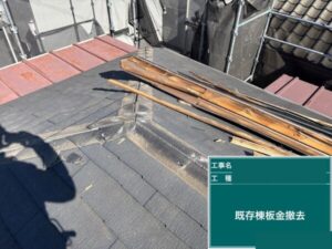 板金と貫板の出っ張りが邪魔になってしまうので、まずはこれらを外していきます。