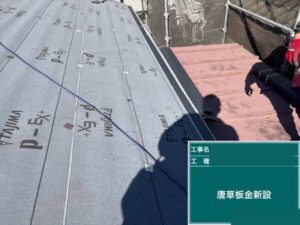 今回お客様が頻繁におこなわなければいけないその塗装メンテナンスに抵抗をお持ちで、耐久性にあるものをとのことでしたので、新しい屋根材を設置する「カバー工法」での屋根修理をさせていただくこととなりました。