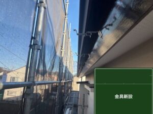その段差を解消するために、「セットバックスターター」とよばれる軒先板金を屋根の軒先につける必要があるのですが、そのセットバックスターターが設置されていませんでした。