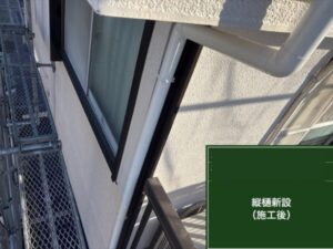 外壁に沿って設置する竪樋は外壁と同色の白色のものを設置します。