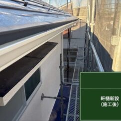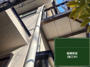 外壁に沿って設置する竪樋は外壁と同色の白色のものを設置します。