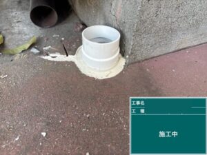 しっかりはまっていなかった竪樋と地面の接合部分はシリコン材を埋めて、しっかりと固定しました。