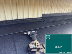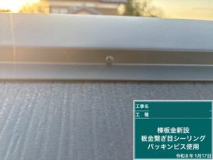 棟板金同士の繋ぎ目はシーリング材を埋めることで、隙間を塞いでいます。
