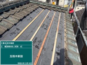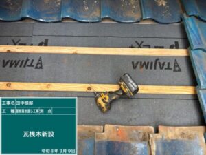 次に、瓦を引っかけて固定するための土台、桟木を設置します。