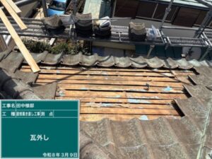 30年以上前の瓦屋根によくみられる、バラ板という隙間のある土台です。