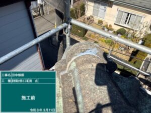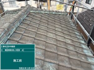 施工前の屋根は、経年によるダメージが見られる状態。