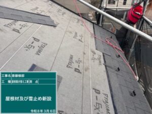 こちらの写真のように、初めの段階で雪止めの部材を取り付けます。