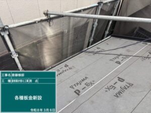 次に、屋根材の前に取り付けておく板金類を設置します。