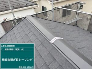 板金同士の継ぎ目にはシーリングを充填して、防水性を高めた処置を行います。