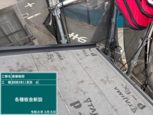次に、屋根材の前に取り付けておく板金類を設置します。